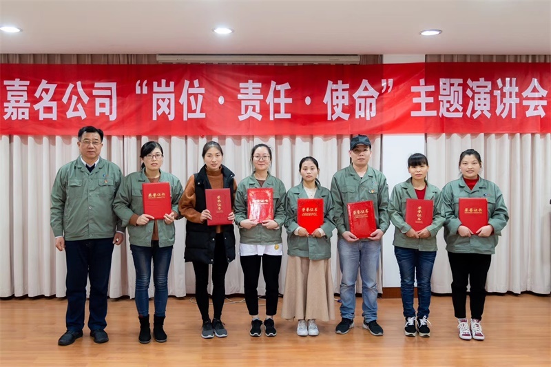 演講結束后,公司黨總支書記莫總講了話,他對各位演講者滿懷激情、積極向上的精神面貌表示肯定和贊許。他從演講中所贊揚的先進人物,以及社會上的先進模范進一步對責任與使命進行詮釋,并希望通過這次演講活動和學習先進人物進一步增強員工的責任感、使命感,更好地激發工作積極性、主動性和創造性,同時要求廣大員工深化“崗位·責任·使命”主題活動,積極開展提合理化建議和QC小組活動,發揮大家的智慧和力量,團結一心,共同努力實現嘉名的健康發展。