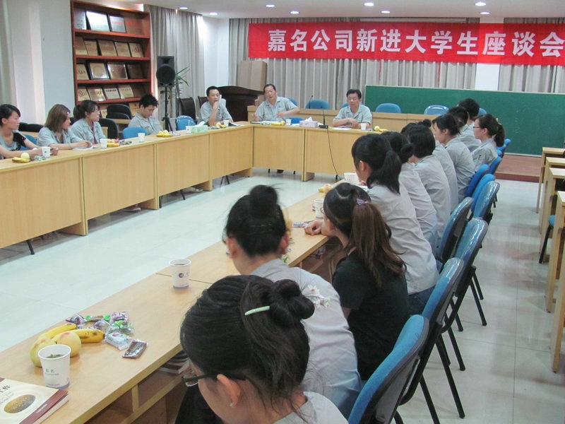 7月3日晚6時,公司在三樓多功能廳召開了新進公司工作的2011年應屆大學畢業生座談會,共有20多名大學生參加了會議。會議由人力資源部戚遠航經理主持,莫炳榮總經理、莫榮明副總經理、行政后勤部俞云松經理出席了會議。